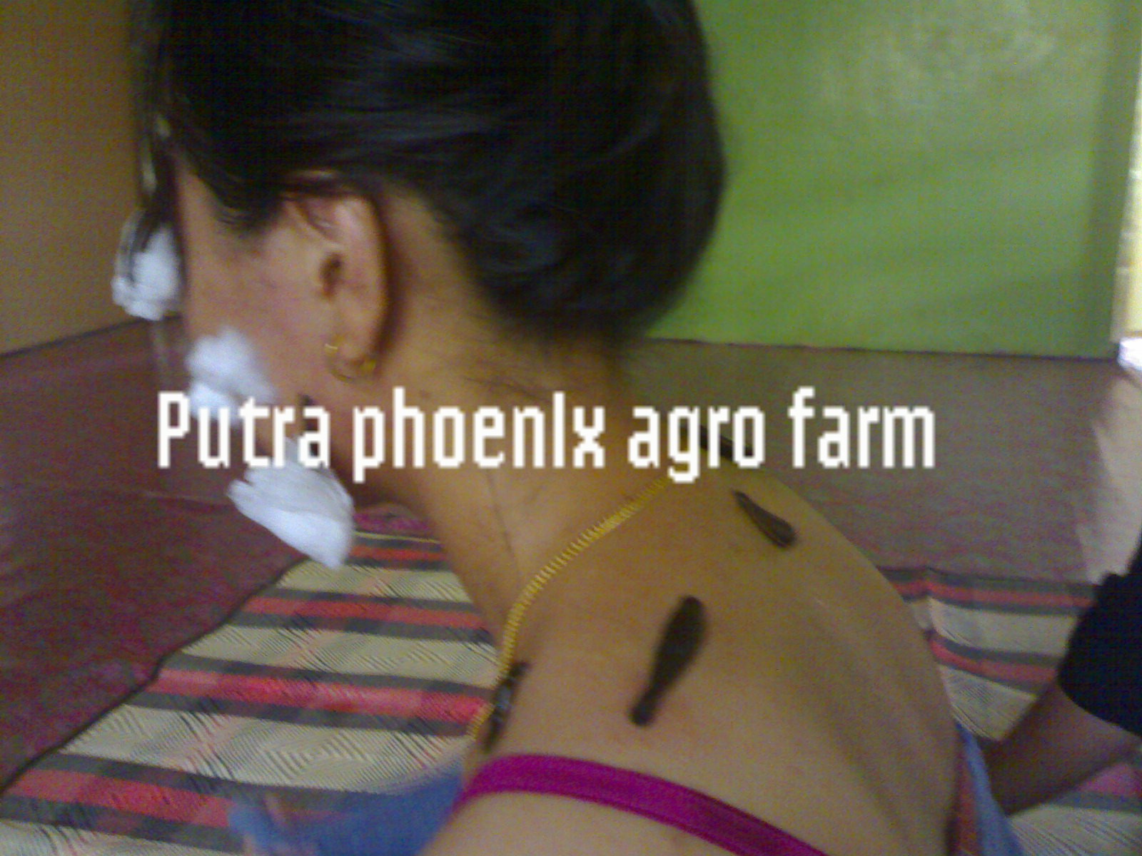 bahu pesakit ini sedang menjalani proses bekam lintah